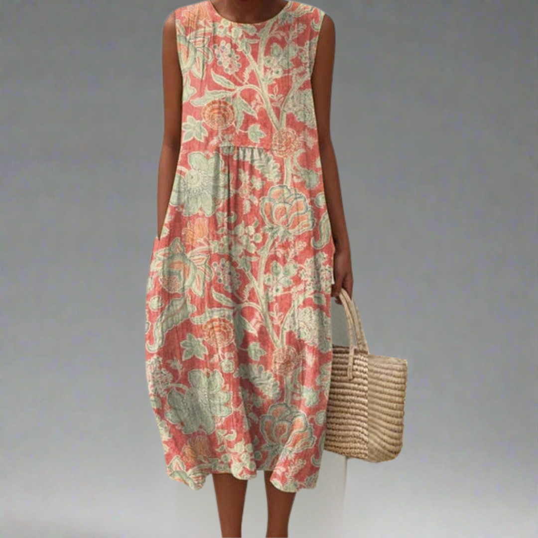 ELENA - MIDI PLEATED DRESS WITHOUT SLEEVES