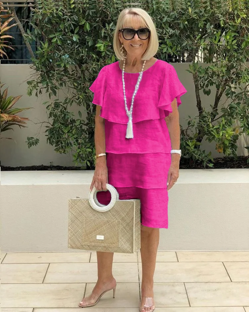 Let yourself be carried away by the lightness of this charming ruffled dress. Its flowing fabric and twirling silhouette offer a carefree elegance, perfect for sunny days and outdoor moments.